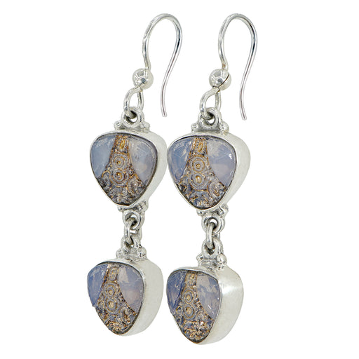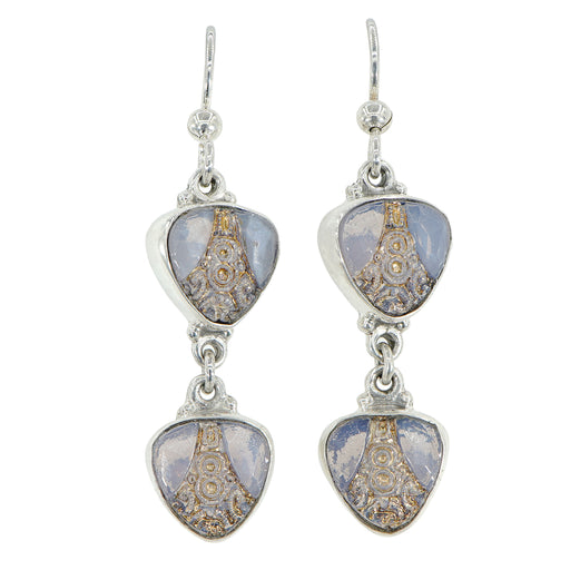 Elizabeth NgoOriginal price $205 - Original price $205Original price$205$205 - $205Current price $205| /Double Drop Luster Glass Button Earrings by Elizabeth NgoAntique Czech luster glass buttons Hand painted gold detailSet in sterling silver2" long