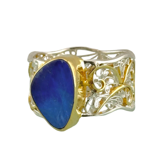 MichouOriginal price $595 - Original price $595Original price$595$595 - $595Current price $595| /Dark Blue Opal Ring by MichouLarge Opal set in sterling silver with 22k gold vermeil throughoutOne of a kindSize 8Jewelry Care: Michou recommends u...