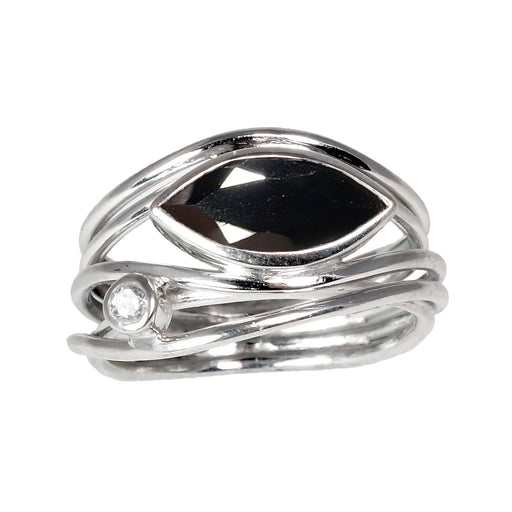 Q EvonOriginal price $420 - Original price $420Original price$420$420 - $420Current price $420| /East West Silver Marquise Ring - Black Spinel by Q Evon Handcrafted in sterling silver and plated with white rhodium to prevent tarnish. Marquis...