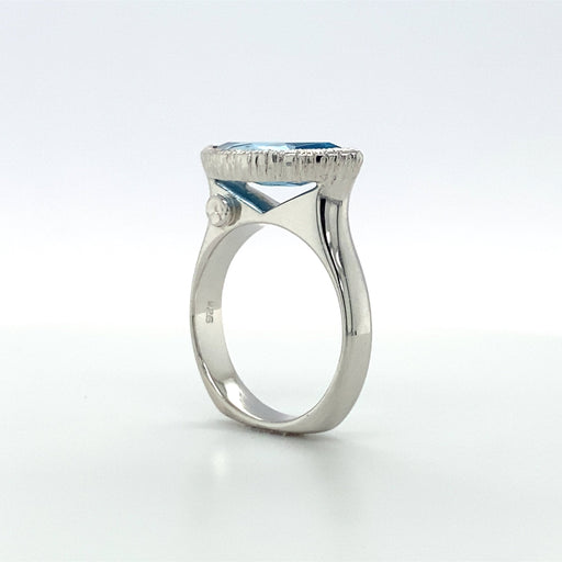 Q EvonOriginal price $590 - Original price $590Original price$590$590 - $590Current price $590| /East West Marquise Blue Topaz Ring – White Rhodium by Q EvonHandcrafted in White Rhodium over sterling silver.Marquise shaped Blue Topaz measures...