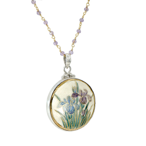 Elizabeth NgoOriginal price $350 - Original price $350Original price$350$350 - $350Current price $350| /Antique Iris Button Necklace by Elizabeth NgoVictorian era, hand painted Satsuma buttonThe back of the button is exposedSet in sterling silverBeade...