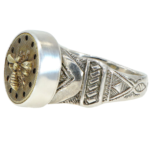 Elizabeth NgoOriginal price $205 - Original price $205Original price$205$205 - $205Current price $205| /Antique Bee Button Ring by Elizabeth NgoVictorian Era Metal Picture ButtonSet in sterling silverSize 9.5
