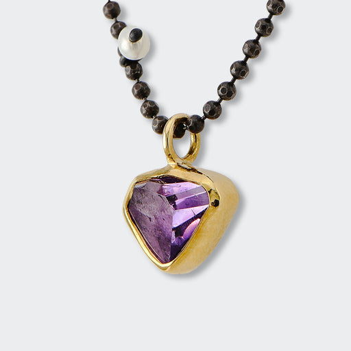 MargoniOriginal price $610 - Original price $610Original price$610$610 - $610Current price $610| /Amethyst Necklace by Margoni1.5 cts of hand cut amethystSet in 18k yellow goldOxidized sterling silver chain with pearl detail
