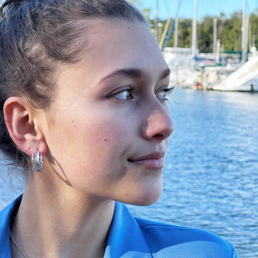 White Rhodium Edge Post Hoops - Large Omega Back Earrings