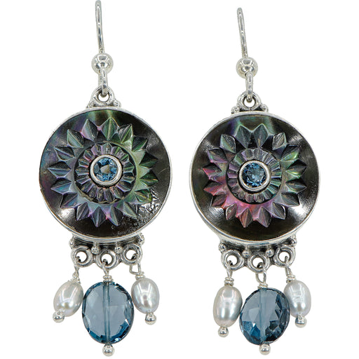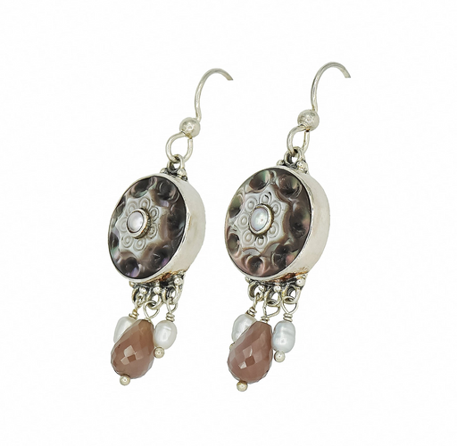 Elizabeth NgoOriginal price $235 - Original price $235Original price$235$235 - $235Current price $235| /Carved Shell Button Earrings by Elizabeth NgoIridescent carved shell antique buttonsSet in sterling silver with topaz and pearl accentsFrench wires