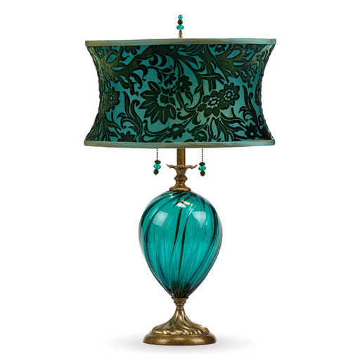 Kinzig DesignsOriginal price $1,130 - Original price $1,130Original price$1,130$1,130 - $1,130Current price $1,130| /Daphne Lamp by Kinzig DesignsDaphne is a striking lamp with teal blown glass. Its round shade is covered with Kevin O'Brien Prospect Park velvet in...