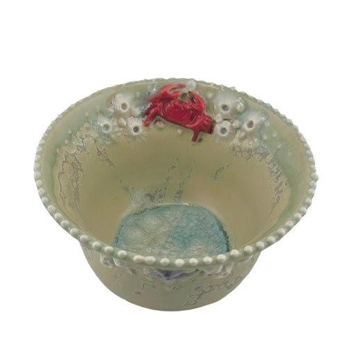 Sherron TotterOriginal price $55 - Original price $55Original price$55$55 - $55Current price $55| /Crab Dip Bowl by Sherron TotterPorcelain clay bodyHand thrown & hand building techniques Dishwasher safeMeasures approximately 4.75" x 2.5"
