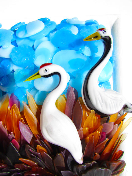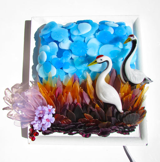 FlameTree GlassOriginal price $2,000 - Original price $2,000Original price$2,000$2,000 - $2,000Current price $2,000| /Crane Wall Light by FlameTree GlassOne of a kind lamp with ruby, cobalt, aqua, amber, golds and purple glass Flame worked Hangs on a wall with ...