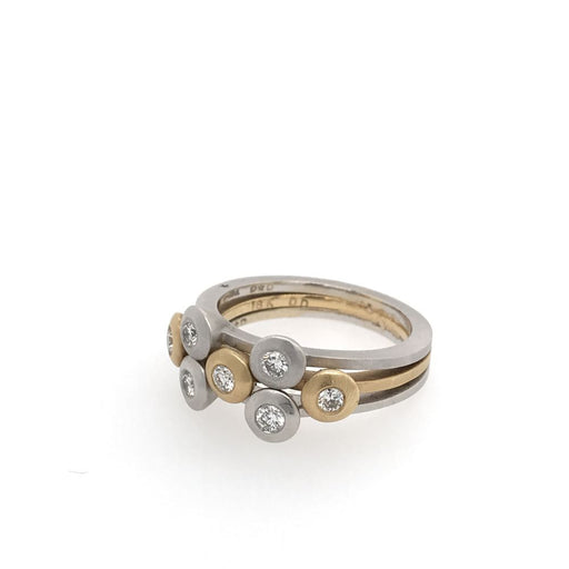Dana DavidOriginal price $3,540 - Original price $3,540Original price$3,540$3,540 - $3,540Current price $3,540| /3 Cono Diamond Ring 18k White and Yellow Brushed Gold Three bands fused together make up this brilliant mixed metal ring All Diamonds are at least ...