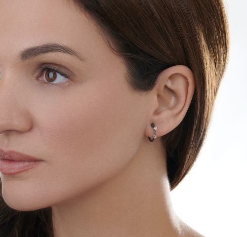 Dana DavidOriginal price $780 - Original price $780Original price$780$780 - $780Current price $780| /Cono Shadow Small Huggie Earrings by Dana DavidOxidized Sterling Silver & 18K White Gold with Diamonds0.08 total diamond weightAll Diamonds ar...
