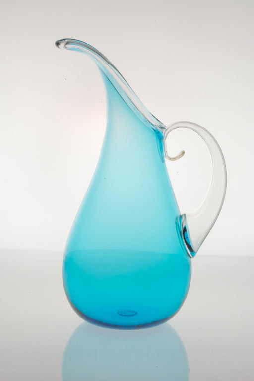 Orbix Hot GlassOriginal price $285 - Original price $285Original price$285$285 - $285Current price $285| /Copper Blue Curly Pitcher by Orbix Hot Glass Handcrafted in Alabama Blown glass pitcher with clear handle and lip Each pitcher is hot stamped...