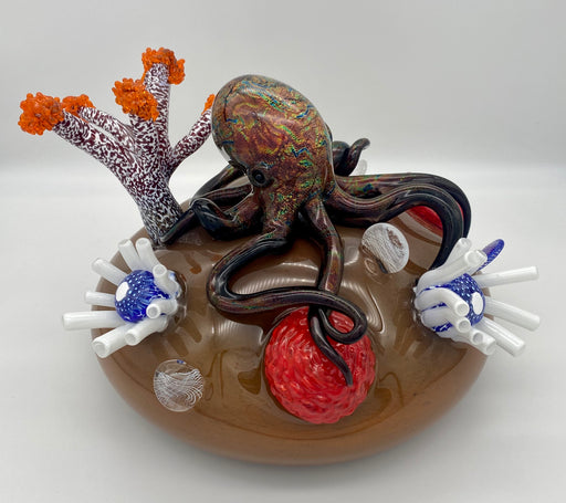 Dan McStocker GlassOriginal price $4,000 - Original price $4,000Original price$4,000$4,000 - $4,000Current price $4,000| /Coral Octopus Seascape Sculpture by Dan McStocker GlassBlown glass base Solid glass sculpted coral elements Dichroic solid glass sculpted octopus m...