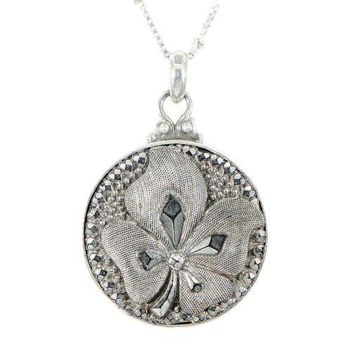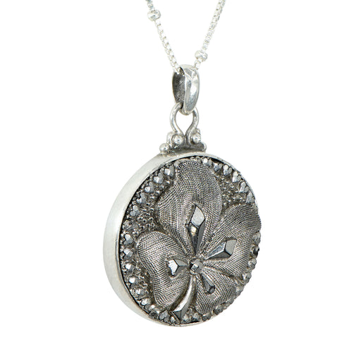 Victorian Shamrock Glass Button Necklace by Elizabeth NgoVictoria era luster glass shamrock buttonSet in sterling silver18" sterling silver chain