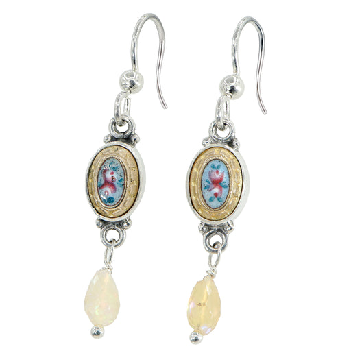 French Enamel Button Earrings by Elizabeth Ngo1800 floral hand painted enamel buttonsSet in sterling silverEthiopian opal drop1.5" long