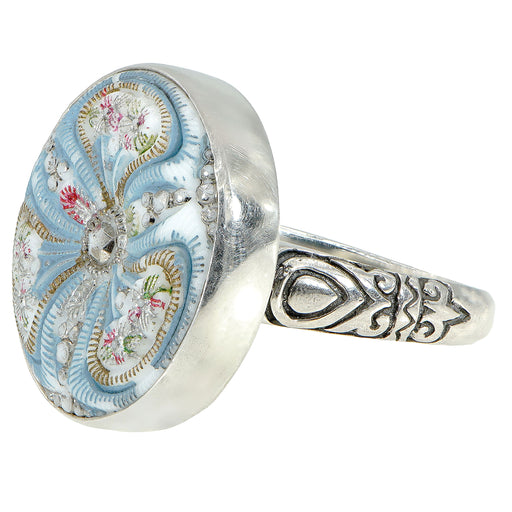 Sky Blue Czech Glass Button Ring by Eliabeth NgoAntique glass buttonSet in sterling silverSize 9