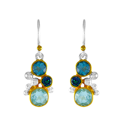 MichouOriginal price $290 - Original price $290Original price$290$290 - $290Current price $290| /Tropical Cluster Earrings by MichouHandmade using sterling silver & 22k gold vermeil accents Faceted baby blue topaz1.75" drop