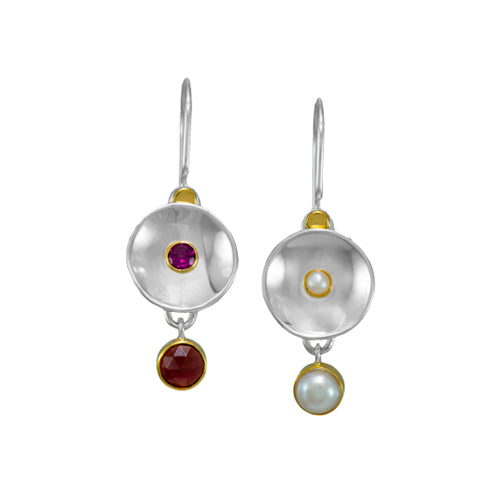 MichouOriginal price $375 - Original price $375Original price$375$375 - $375Current price $375| /Reflection Earrings by MichouHandmade using sterling silver & 22k gold vermeilStone includes garnet, white freshwater pearl, and rhodolite