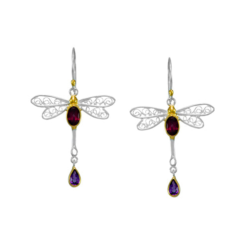 MichouOriginal price $200 - Original price $200Original price$200$200 - $200Current price $200| /Dragonfly Dance Earrings by MichouHandmade using sterling silver & 22k gold vermeilFaceted African amethyst Measures 1.75" long
