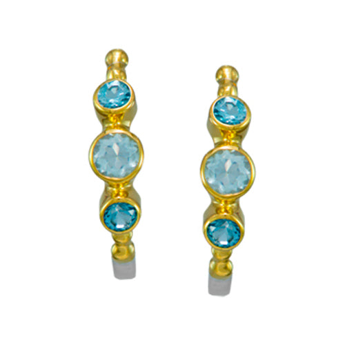 MichouOriginal price $355 - Original price $355Original price$355$355 - $355Current price $355| /Triple Stone Hoop Earrings by MichouStones include two baby blue topaz and one sky blue topaz in centerSet in sterling silver with 22k gold vermeil...