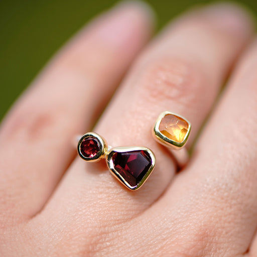 MargoniOriginal price $1,362 - Original price $1,362Original price$1,362$1,362 - $1,362Current price $1,362| /Tourmaline & Garnet Statement Ring by Margoni4 total cts of hand carved Tourmaline & GarnetSet in 18k yellow gold with a sterling silver ba...