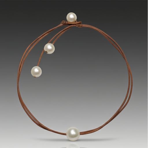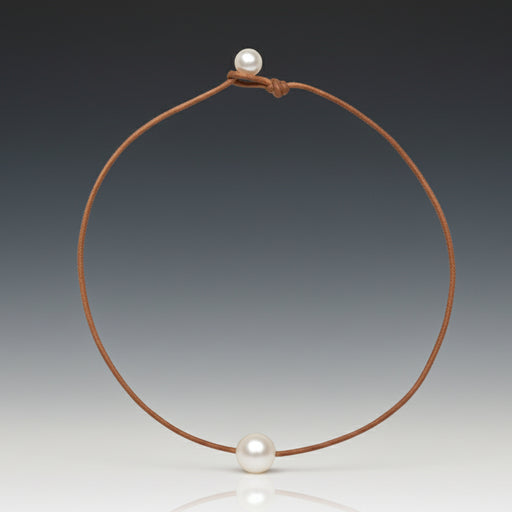 Coastal Single White Freshwater Pearl and Leather Choker Necklace