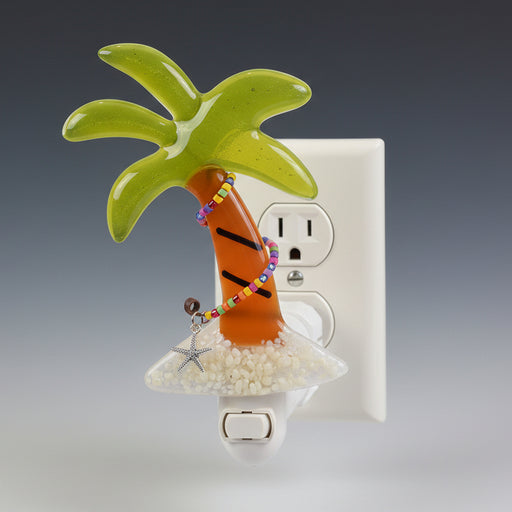 Glass Art DesignsOriginal price $45 - Original price $45Original price$45$45 - $45Current price $45| /Palm Tree Nightlight by Glass Art Designs Fused green and orange glass with beaded and metal starfish detail Individually handmade, colors may va...