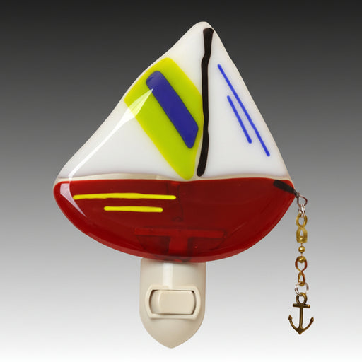 Glass Art DesignsOriginal price $45 - Original price $45Original price$45$45 - $45Current price $45| /Sailboat Nightlight by Glass Art Designs Fused red and white glass with blue, green and yellow details Individually handmade, colors may varySpe...
