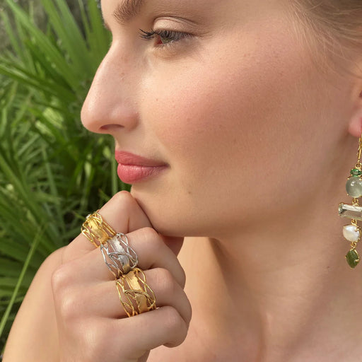 Q EvonOriginal price $367 - Original price $367Original price$367$367 - $367Current price $367| /Gold Double Strand Avalon Necklace by Q Evon Finely crafted in oxidized sterling silver and 18k vermeil. Adjustable 16”-18” Avalon, literally...
