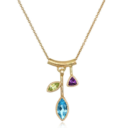 Q EvonOriginal price $525 - Original price $525Original price$525$525 - $525Current price $525| /3 Stone Petal Blue Topaz Pendant Necklace by Q Evon Handcrafted in sterling silver with gold 18k vermeil. AAA faceted blue topaz, peridot, and a...