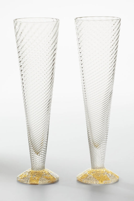 Tom StoennerOriginal price $50 - Original price $50Original price$50$50 - $50Current price $50| /Clear & Gold Champagne Flutes 24k gold leaf sparkles from the pebbled foot of each graceful blown champagne flute accented by a delicate spir...