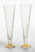 24k gold leaf sparkles from the pebbled foot of each graceful blown champagne flute accented by a delicate spiral of ribbing.