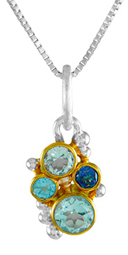 MichouOriginal price $198 - Original price $198Original price$198$198 - $198Current price $198| /Cluster Necklace by Michou Sterling silver & 22k gold vermeil Faceted baby blue and sky blue topaz18" sterling silver chain