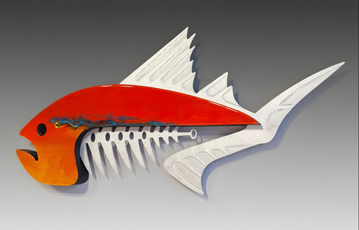 • Blazing Red Roosterfish Metal and Wood Wall Sculpture