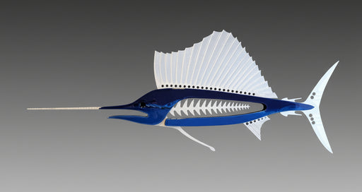 • Dark Blue Sailfish Metal and Wood Wall Sculpture