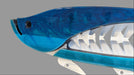Blended transparent blues gracefully flow across the surface of this stunning Tarpon, showcasing the natural beauty of the wood grain. The brushed aluminum fins and the bone accents catch the light and enhance the overall color palette. While each piece has the same design, the color variations make each one completely unique. The body is made from soft maple, a sustainable hardwood sourced from the USA. The transparent colors are mixed in a resin that is entirely VOC-free.Measures 32” x 15” x 1.5”, hanging hardware is included.